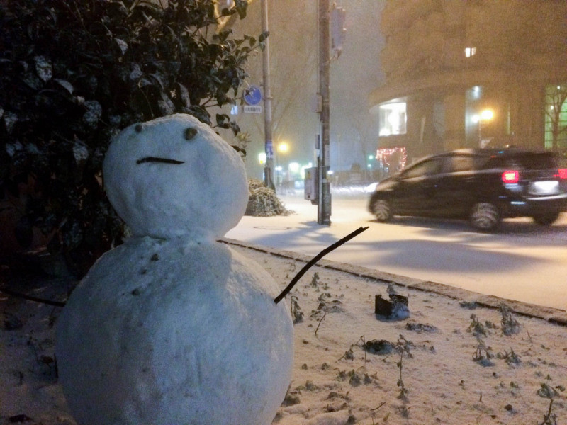 昨日からの降雪で街中は雪化粧です。道路はほぼ歩行者天国と化し、子供達が作る雪だるまを至る所で見掛けました。