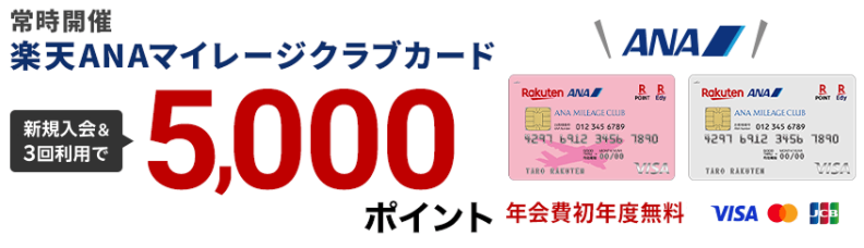 発行枚数を順調に伸ばしている楽天ANAマイレージクラブカードでは、現在楽天スーパーポイント5,000ポイントが貰える入会キャンペーンを期間限定で実施しています。