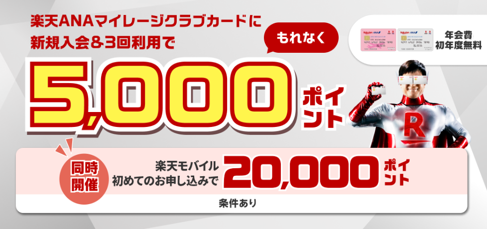 発行枚数を順調に伸ばしている楽天ANAマイレージクラブカードでは、現在楽天スーパーポイント5,000ポイントが貰える入会キャンペーンを期間限定で実施しています。