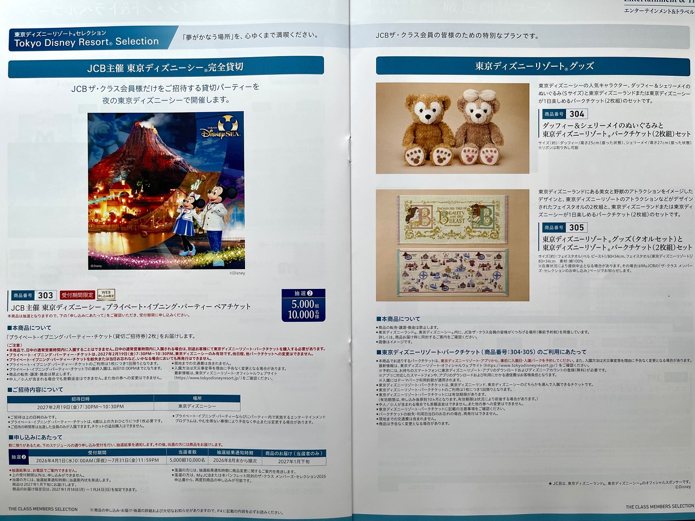 そして(JCBザ・クラス会員貸切り開催の)東京ディズニーシーペアチケットと、TDRオフィシャルグッズ。