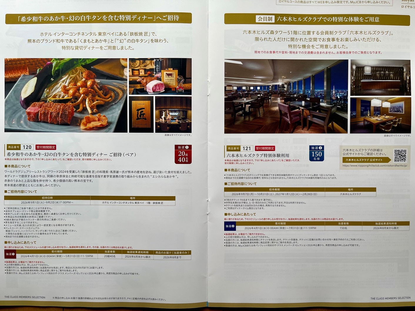 毎年の恒例行事ですが、今年もJCBザ・クラスのメンバーズセレクションカタログが到着しましたので「ロイヤルαプラス限定コース」を含む全てのコース・商品を(今年は、ほぼ寸評なしwで)サラッと掲載します。