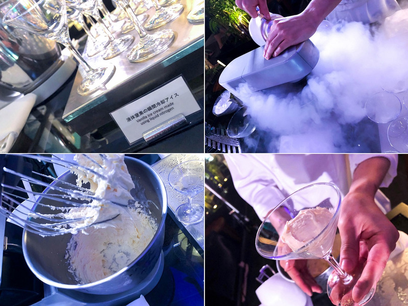 画像↑は此度のブッフェで提供されたデザートのひとつであり、おそらく目玉だったと思われる液体窒素瞬間冷却アイス製造機w 確かに一瞬にしてアイスが仕上がっていました。