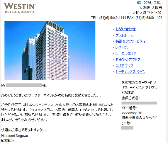「もう、コンシェルジュへ丸投げしよう」と思い電話を手に取った際、妻が「ウェスティンがいいな」と、何気ない一言。