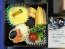 安定の?出発ディレイにより、離陸したのは20分遅れ。巡航高度に達した辺りで機内食が提供されました。プレミアム茶房です。