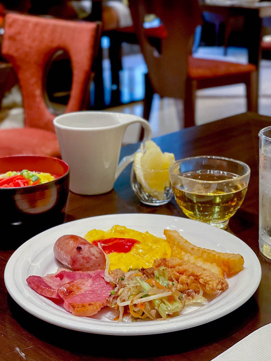 ダブルツリー那覇ではダイヤモンドメンバーおよびゴールドメンバーに対し、朝食(2,900円/人)が無料で提供され、さらにレストランが混み合うなかでもテーブルをキープしてくれますので長蛇の列に並ぶ必要がありません。